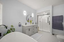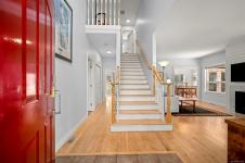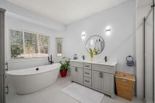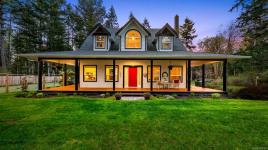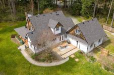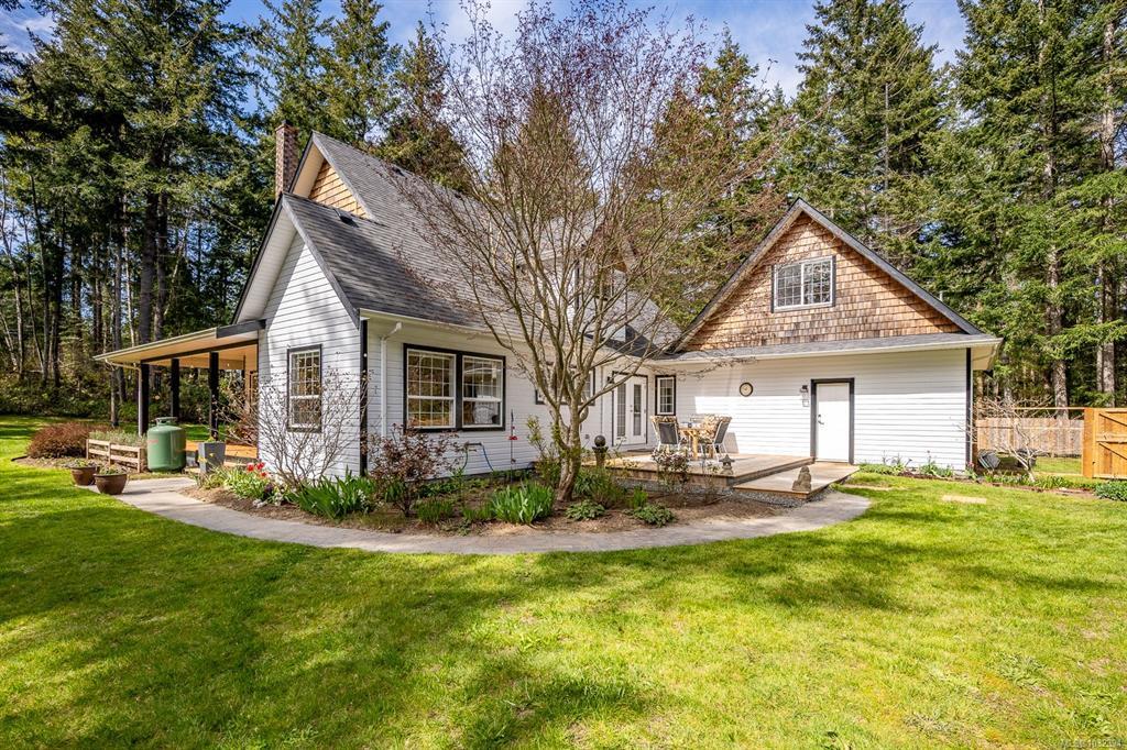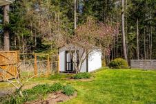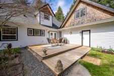 Charming Cape Cod-style home on 2.18 private, sunny acres, just minutes from Seal Bay Park and the beach. Beautifully updated with fresh paint inside and out, this home features a bright, modern kitchen with white cabinetry, quartz countertops, tile backsplash, and newer stainless appliances. The cozy living room offers a propane fireplace, while the main-level primary bedroom includes a stunning renovated ensuite with soaker tub, double sinks, and tiled shower. Upstairs are two spacious bedrooms plus a bonus room off the garage. Enjoy outdoor living with a large deck and partially wraparound covered porch for year-round use. The property includes drip irrigation, cedar garden beds, and a variety of fruit trees. New heat pump and roof in 2021 complete this exceptional home