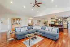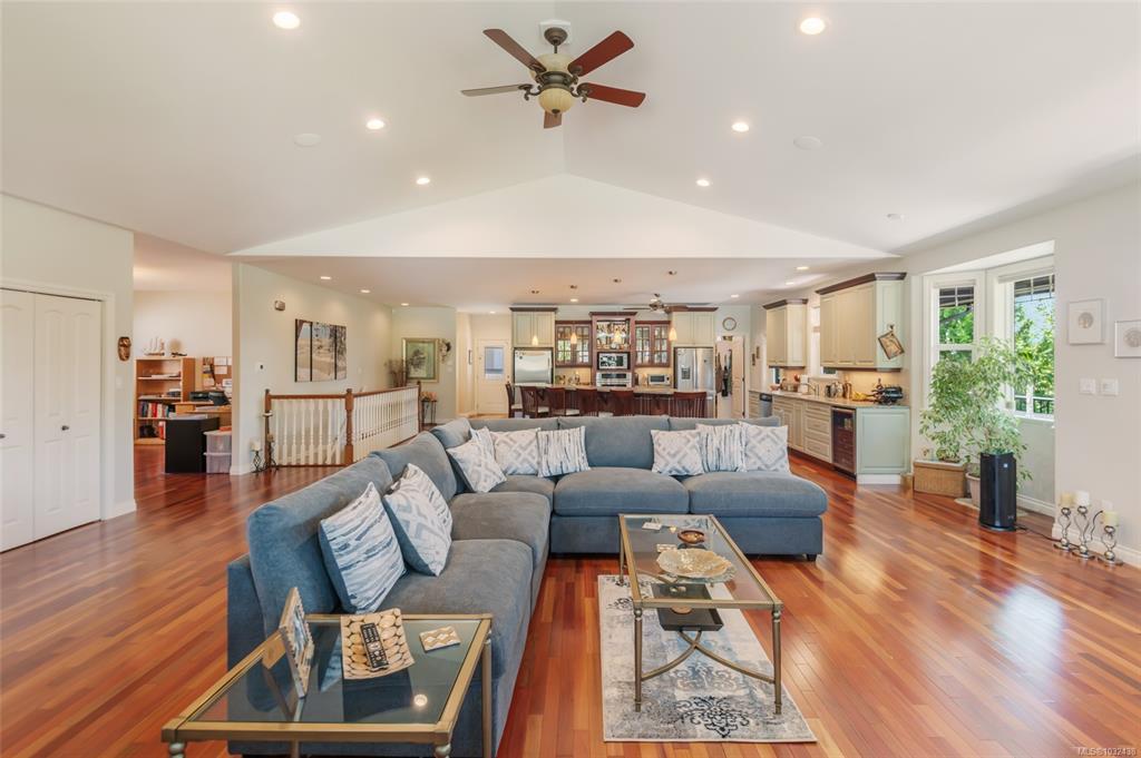 Welcome to Sahara Heights, where mountain views, stunning sunsets, and a walkable location come together in a home that makes daily life feel easier. With over 4,000 sqft of meticulously maintained living space, this property offers room to gather, unwind, and grow. Vaulted ceilings and a bright open-concept living and dining area create an inviting heart of the home, anchored by a gourmet kitchen with a large island, gas range, walk-in pantry, and direct access to the southwest-facing deck for morning coffee or sunset dinners. The main level includes two bedrooms with ensuites and heated floors, a den, and dedicated laundry. Downstairs adds flexibility with two more bedrooms, a rec room, cold room or wine cellar, full bathroom, and in-law suite potential. Outside, enjoy a fenced landscaped yard, double garage, RV or boat carport, and laneway access, all just minutes from schools, Echo Pool, and hockey nights at the Multiplex. Reach out any time to arrange your private viewing.