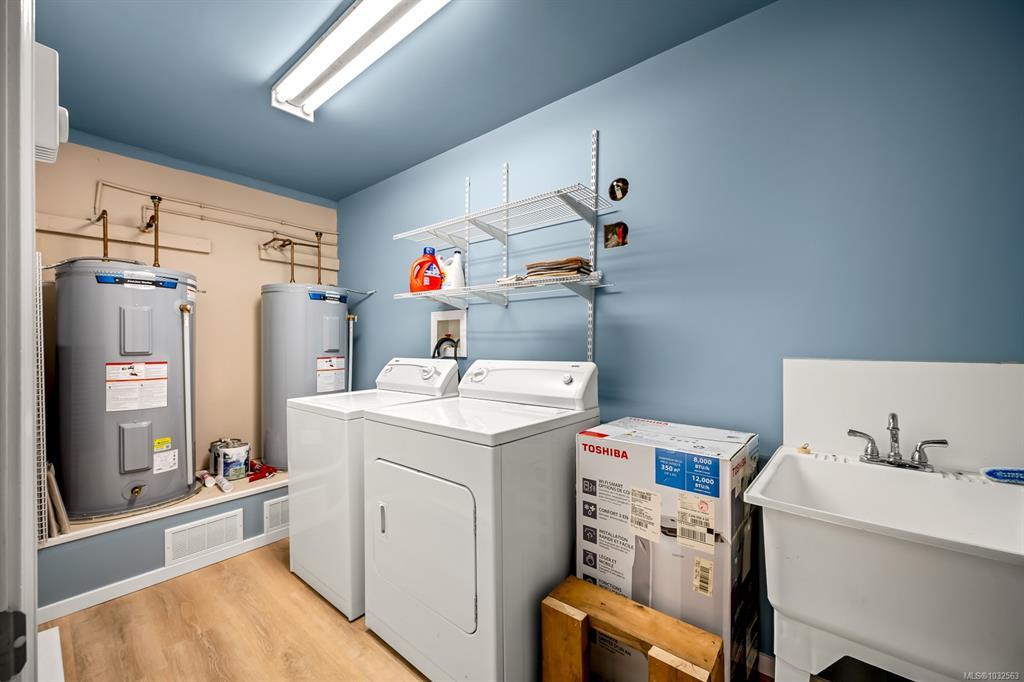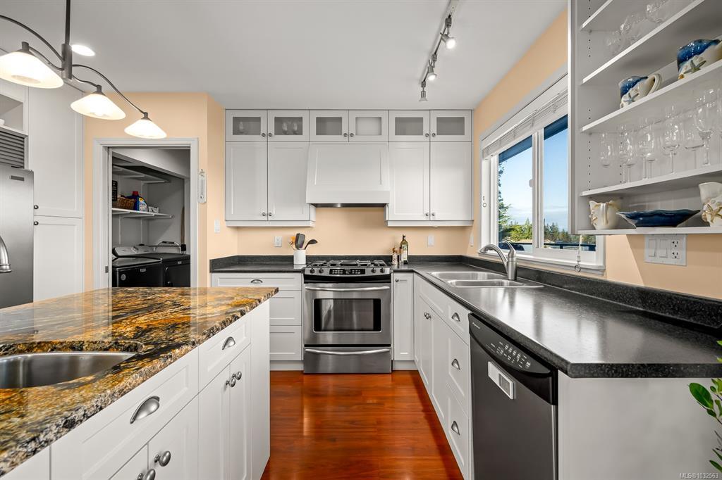 Welcome to 261 Alder Street—an updated, ocean-view home with a flexible suite setup and private gardens in a central Campbell River location. The bright open-concept main level is ideal for entertaining, featuring a custom kitchen with granite island, pantry, stainless fridge and gas stove, plus a cozy gas fireplace. Step out to the massive deck and take in the stunning ocean views—perfect for summer dinners and hosting friends. Comfort is dialed in year-round with three mini-split heads for efficient heating and cooling. Downstairs, the spacious and sunny suite offers excellent storage and its own fully fenced yard and garden space, creating great separation for tenants, guests, or extended family. Two single garages—one with rear alley access—plus room for an RV/boat or extra vehicles. Multiple fenced outdoor zones add privacy for both levels, and the mature landscaping feels like a true garden paradise. Minutes to shopping, schools, and the Seawalk. Book your showing—move-in ready.