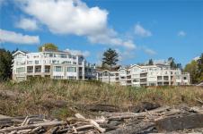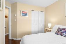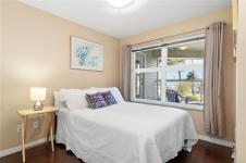 You will find that view perfectly framed on the covered balcony/deck and from almost every room. Inside the space opens up into a seamless kitchen, dining, and living area designed to feel expansive without losing its sense of comfort. A gas fireplace anchors the living room and the patio door leads to a large covered balcony that extends your living space outdoors, also accessed from the primary bedroom. The layout offers 2 bedrooms, a den, and 2 bathrooms, including a primary suite with a walk-in closet and an ensuite with double vanities and a walk-in shower. In-unit laundry, underground parking, and secure storage complete the package. It’s a home that stands out for its space, its views from most every room and its unbeatable location by the water.