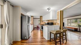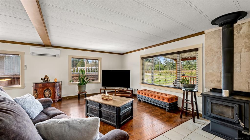 Set back from the quiet Little River Road, just a short stroll from ocean beaches, sits this lovely home with covered patios front & back overlooking your private, peaceful, idyllic 0.57 acre property. Inside, this 3 bedroom, 2 bathroom home is bright, open and very clean. The spacious living room is warmed by a cozy wood stove – perfect on those cool winter days. Central kitchen features stainless steel appliances, ample counter space and is situated between dining room & family room with sliding doors to exceptional backyard deck. Large primary bedroom has well-appointed ensuite. Peace-of-mind extras = metal roof, durable/attractive siding & heat pump. Other bonuses include powered 403sqft powered studio and a powered workshop. Superb location close to shopping, amenities, beaches & recreation – your affordable, rural lifestyle awaits!