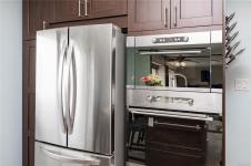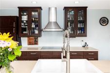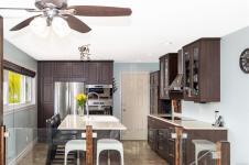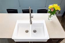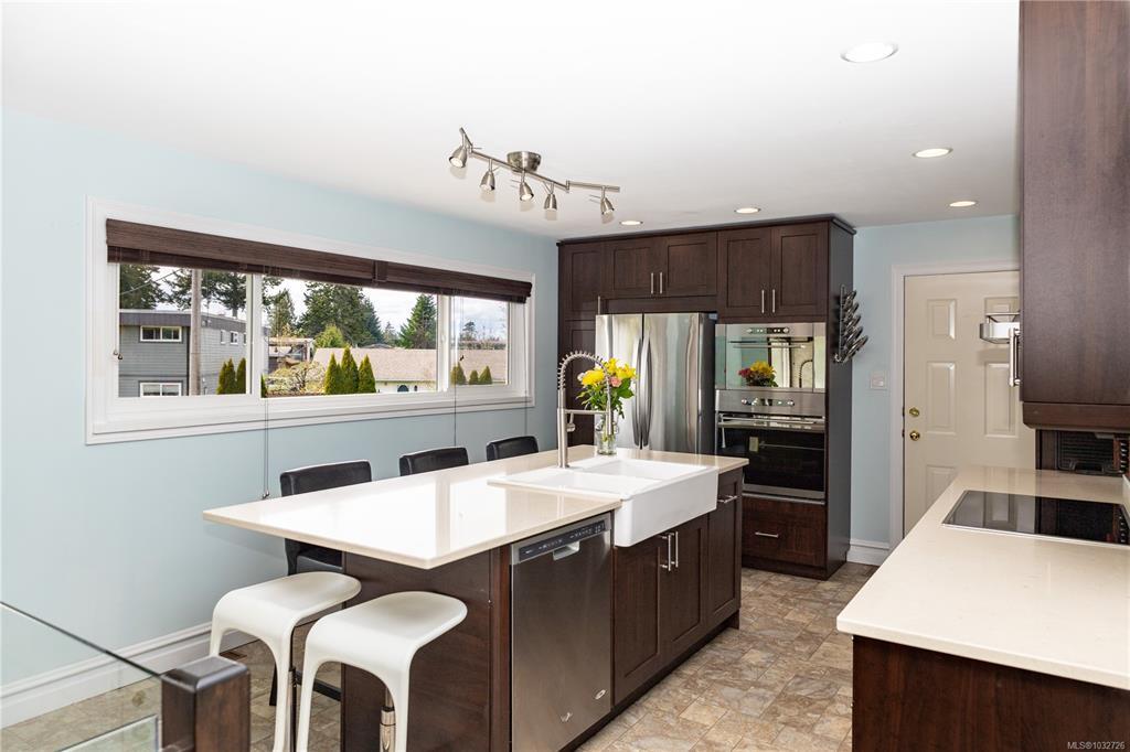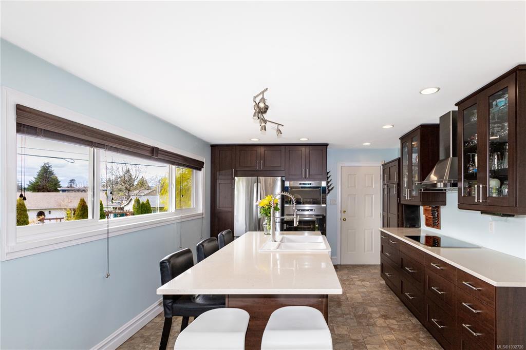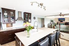 appliances, creating a stylish and functional space for cooking and entertaining around the huge island. The lower