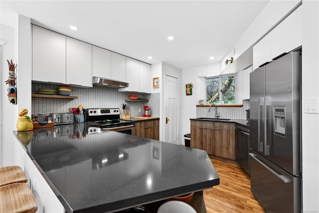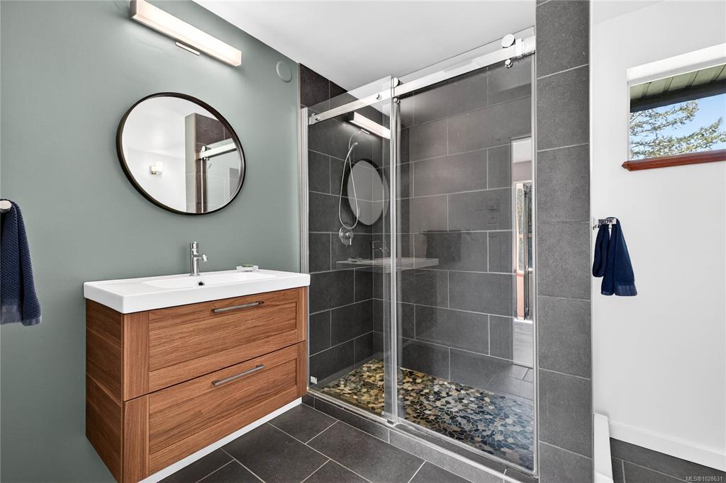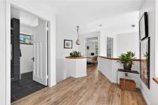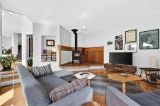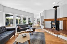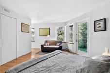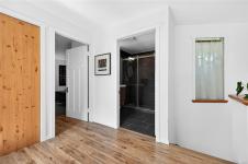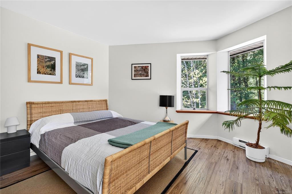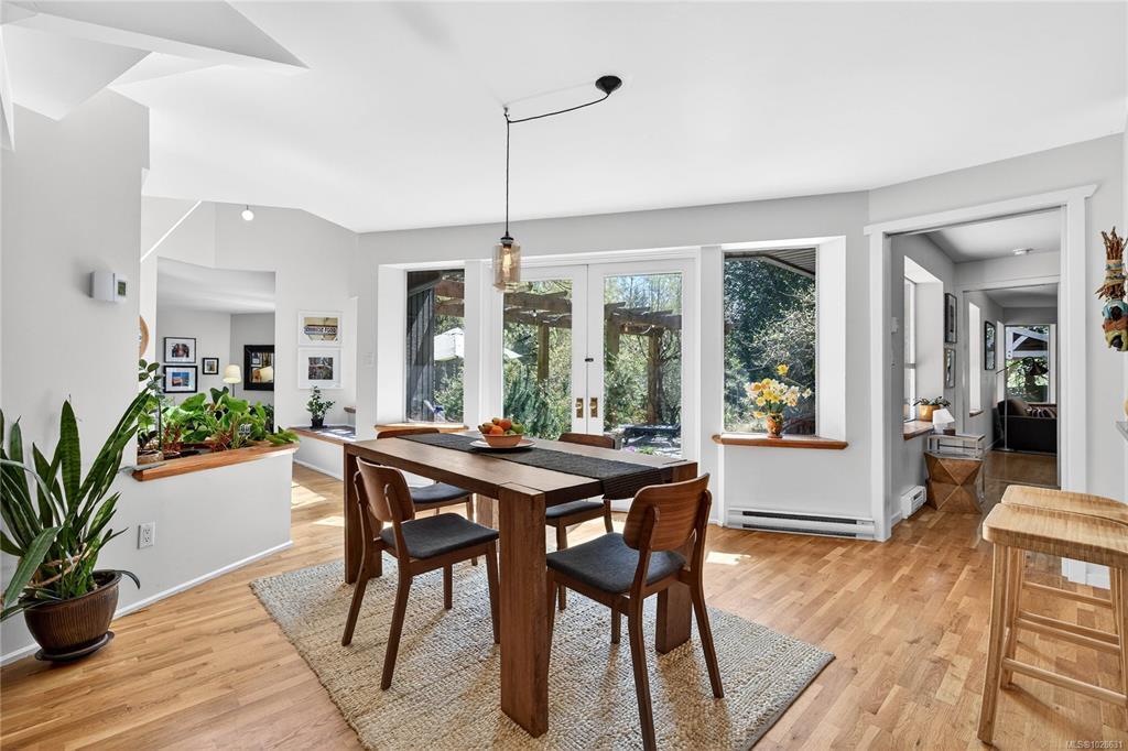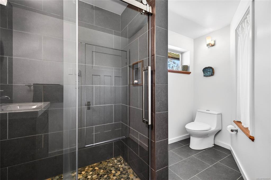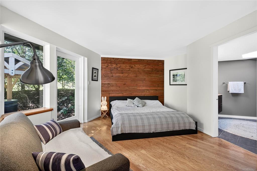 Welcome to a masterfully curated retreat where architectural design meets rural tranquility. 3.73 acres of diverse terrain, blending fertile, sun-drenched garden plots with serene forested areas. This south-facing, 3-bedroom, 3-bathroom residence is a sanctuary of clean lines and character, bathed in natural sunlight. The thoughtfully designed main level features a spacious primary suite, a private den/gym, and an open-concept living and dining area perfect for hosting. At the heart of the home, the kitchen flows seamlessly into the living spaces, while the upper floor offers two additional large bedrooms and a full bath, providing a perfect layout for family life or guests. Experience peace of mind with a durable metal roof, beautiful oak flooring, and a solar power system for eco-conscious living. Current zoning allows for the addition of a guest cottage and further outbuildings, offering incredible potential for a multi-generational estate or rental income.