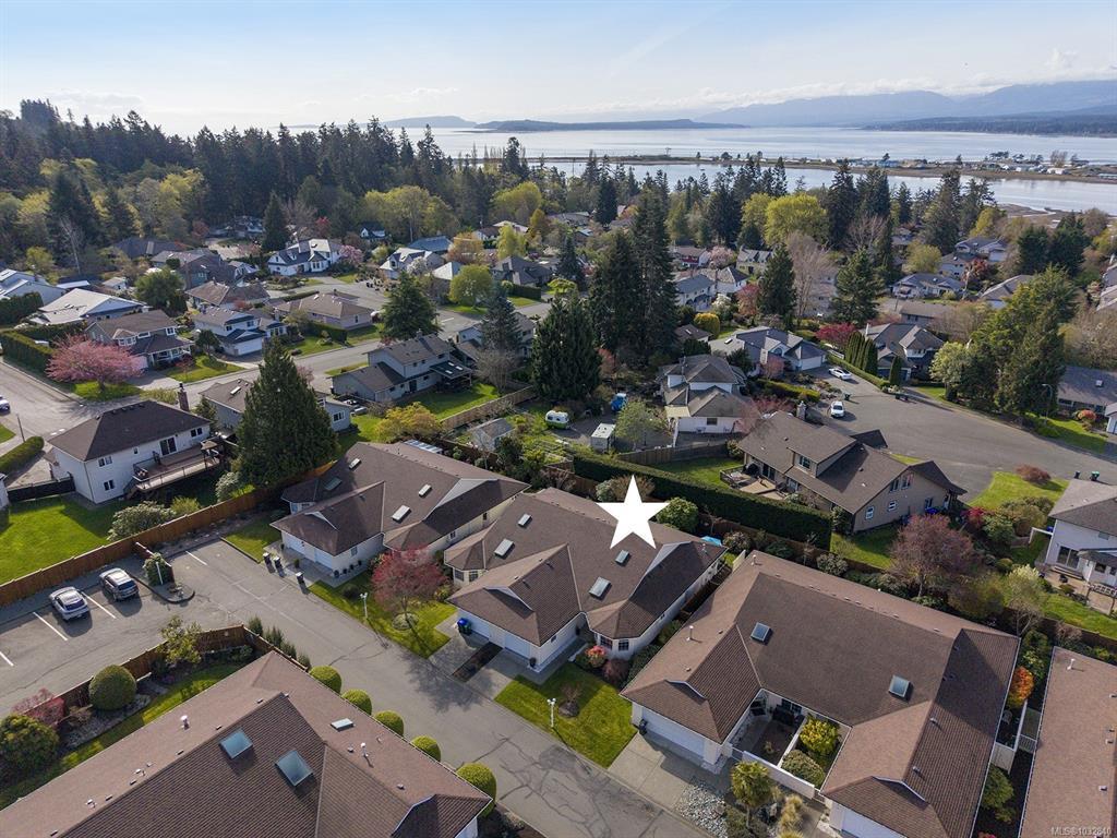 Spinnaker West, a desirable patio home development in the heart of Comox! This immaculate one level residence offers 2 BD/ 2 BA, 1,342 sf, beautifully updated creating a chic modern look. Enjoy sunny afternoons and summer BBQs on the private covered patio w/ southern exposure. Inside the Living room boasts a new gas fireplace 2024, split pump for efficient heating & A/C, new vinyl plank flooring & carpets. A well-designed kitchen offers s/s fridge and stove – 2025, freshly painted cabinets & lovely breakfast nook bathed in morning light. The primary suite w/ ensuite & walk-in closet offers a serene retreat overlooking the back gardens. The guest room/office is conveniently located by the main bath, (new vanity, quartz c/t) & front entry. New paint throughout, 5 windows replaced, Poly B removed, washer & dryer 2024, H/W tank 2024, toilets 2023. Close to everything you need in this quaint seaside town, shops, restaurants, the Marina, Filberg Park, and Brooklyn Creek nature trails.