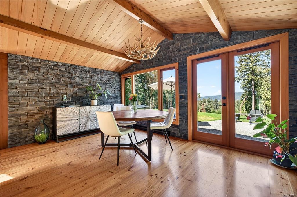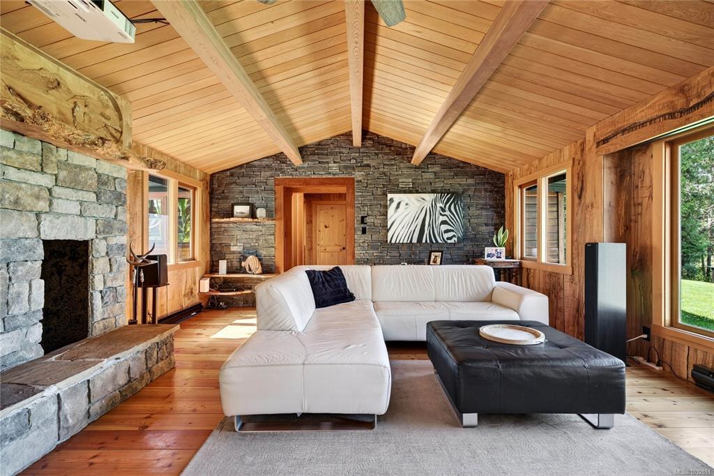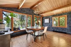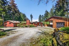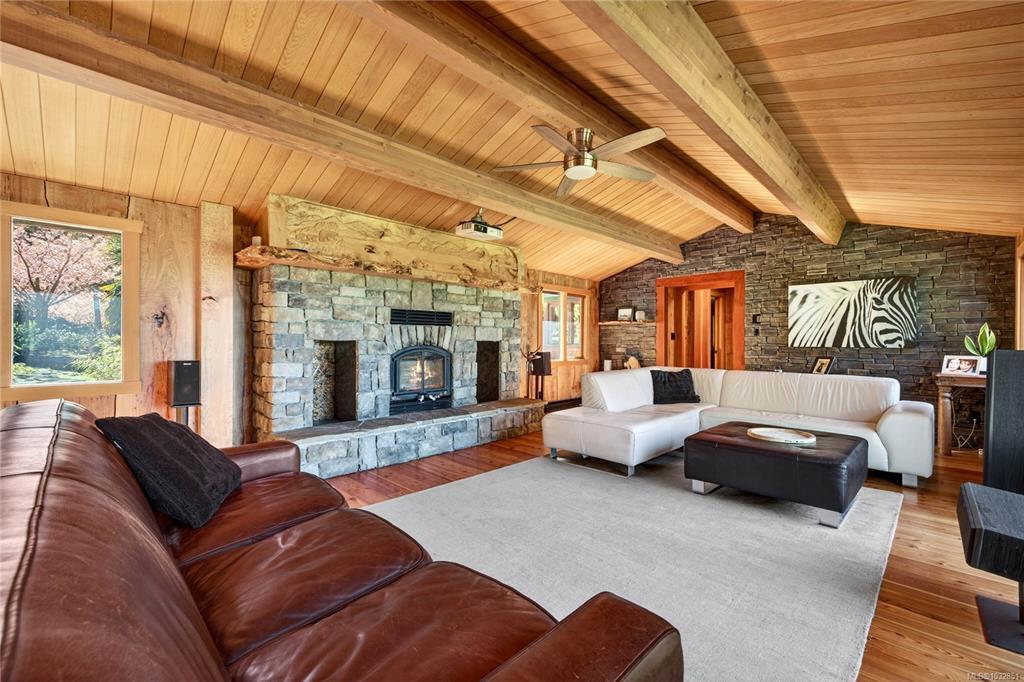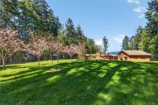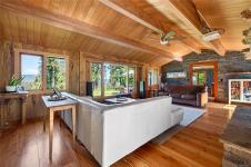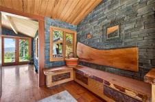 A cherry tree–lined driveway and gated entry welcome you to this exceptional custom-built residence set on 4.99 sunny, serene and private acres. Showcasing superior craftsmanship, the one level home features a stunning blend of wood and stone, highlighted by a truly one-of-a-kind gourmet kitchen with a striking copper range hood, live-edge wood accents, granite countertops, farmhouse style sink, double fridge, and wine fridge. Beautifully designed bathrooms offer unique, spa-like appeal. Skylights, expansive windows, and glass doors flood the home with natural light. Outdoors, the property enchants with a harmonious mix of cultivated and natural landscape, a relaxing hot tub overlooking pastoral grounds, and an inviting patio complete with bar and entertaining area. With zoning that allows for a future guest cottage, a separate garage for vehicles and storage, and ample space to expand, this remarkable property offers endless possibilities and undeniable WOW factor!