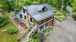 A Gardeners' paradise with room to grow, this lovingly restored 1940s farmhouse was sensitively and aesthetically reimagined with the highest calibre craftsmanship just a few years ago. It is a fully modernized version of country living with 3 bedrooms, 2.5 baths in 2,250 sq. ft. Custom stylings include oak plank floors, gorgeous new windows with reclaimed Douglas Fir trim, radiant heat, and a centrepiece handcrafted maple-slab bar. A full acre of this 3.2 acre farmstead is fenced to keep the deer out and the dog in or perhaps your chickens. Exquisite terraced gardens feature a 6-ft deep goldfish pond with waterfall. Realize your permaculture dream with a 12’ x 30’ greenhouse, raised beds, heritage apple trees, and two wells. Abundant land for horticulture. Convenient drive-in, drive-out driveway. Zoning allows for a cottage and additional outbuildings.
